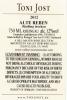 , Toni Jost Riesling QbA Trocken Rheingau 2012 Alte Reben $30.00 TJ-020