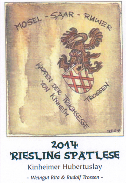 Rudolf Trossen, Riesling, Hubertuslay, Auslese, 2015 $45.00SKU: TR-009List price: $45.00Price: $45.00Weight: 3 lb Quantity * Catalog: Rudolf Trossen$26-50Germany750mlWhiteRiesling2015