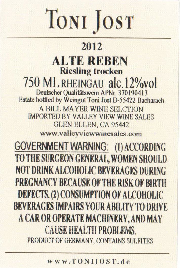 Toni Jost, Reisling, Alta Reben, Trocken, 2016
