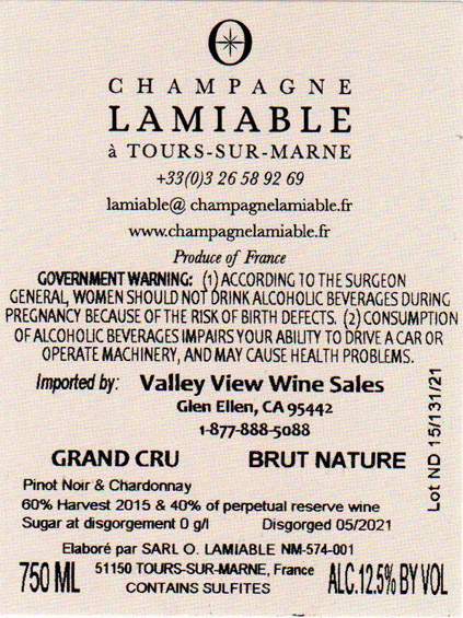 Champagne Lamiable$51-75France750mlUnder Conversion to OrganicWhiteSparklingChampagnenon-vintage  Champagne Lamiable, Graine d'etolies Grand Cru Brut Nature NV