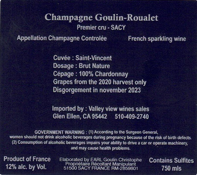 Goulin-Roualet, Champagne St. Vincent, Blanc de Blanc Brut Nature Premier cru 2019
