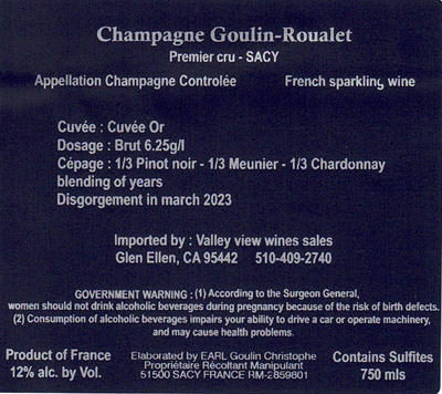 Goulin-Roualet,1 er Cru, Cuvee d'Or Champagne NV