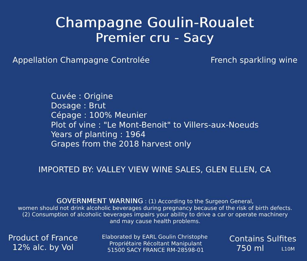 Goulin-Roualet,1er Cru Origine Champagne NV 100% Pinot Meunier